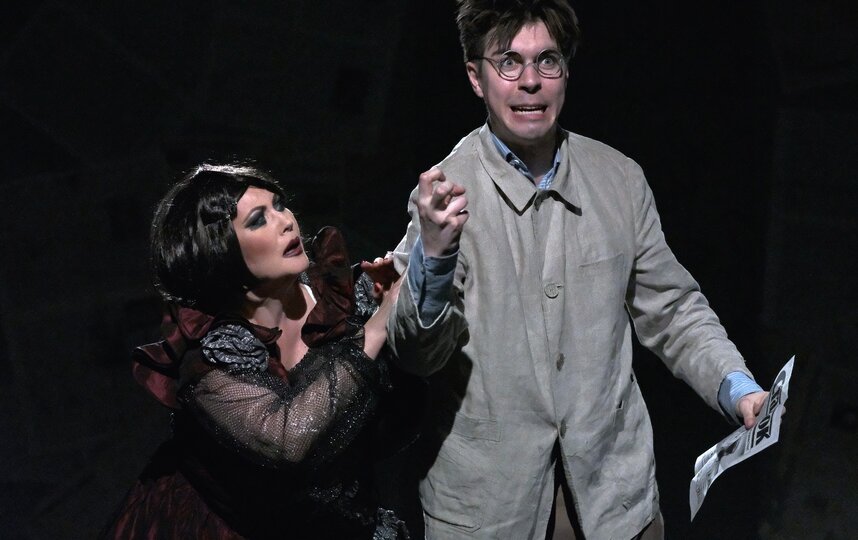 В спектакле "12 стульев" режиссёр Искандер Сакаев сосредотачивает внимание публики на феномене авантюризма как явлении разрушительном не только для общества, но и для самого авантюриста. Форма постановки отсылает к монтажному стилю "ревущих 20-х", а пластическая партитура включает в себя элементы биомеханических этюдов Всеволода Мейерхольда.