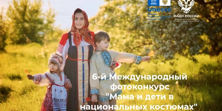 6-й Международный фотоконкурс “Мама и дети в национальных костюмах”, проходит под эгидой Комиссии РФ по делам ЮНЕСКО, при поддержке Федерального агентства по делам национальностей.