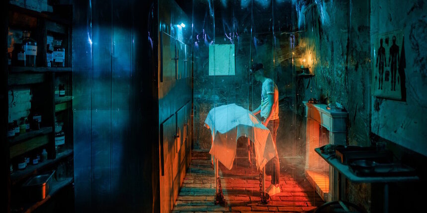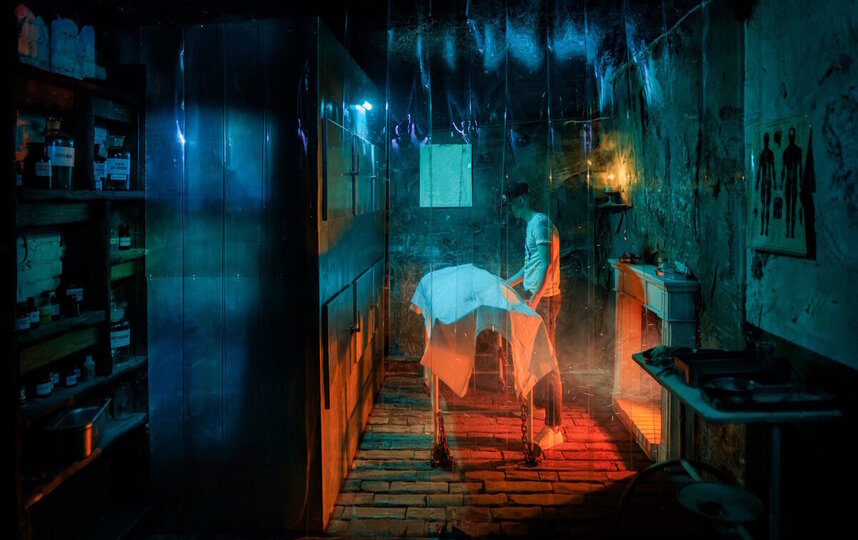Зловещей красной подсветкой залита ванна, тут и там стоят приводящие в тревогу медицинские кресла, вот больничная кровать с раскиданными по ней уродливыми игрушками. И тёмный-тёмный коридор, по которому то и дело в выстреливающих вспышках с визгом пробегают актёры в костюмах хтонических сущностей. "Иди на свет", – указывает безликий электронный голос не пойми откуда, когда игроки уже сбились в группку и ждут дальнейших указаний.