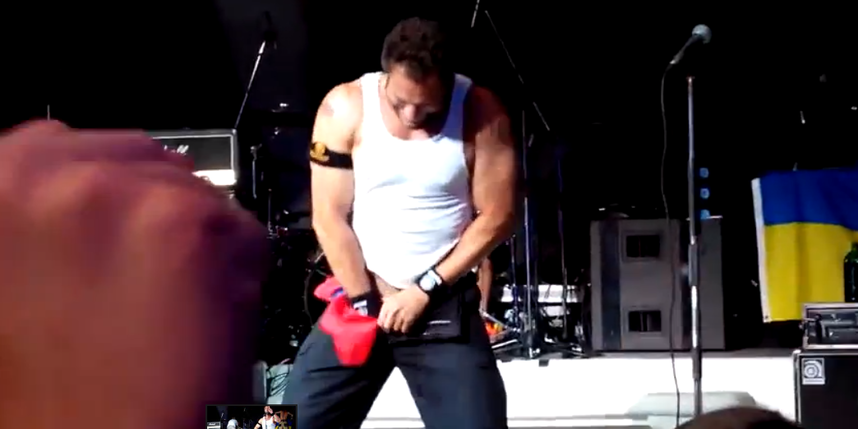 Выходка басиста Bloodhound Gang Джерада Хасселхоффа, который в ходе концерта в Одессе подтерся российским флагом, вызвала бурю возмущения в американоязычном интернете.