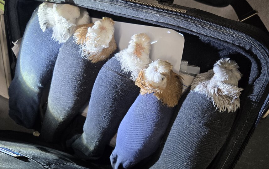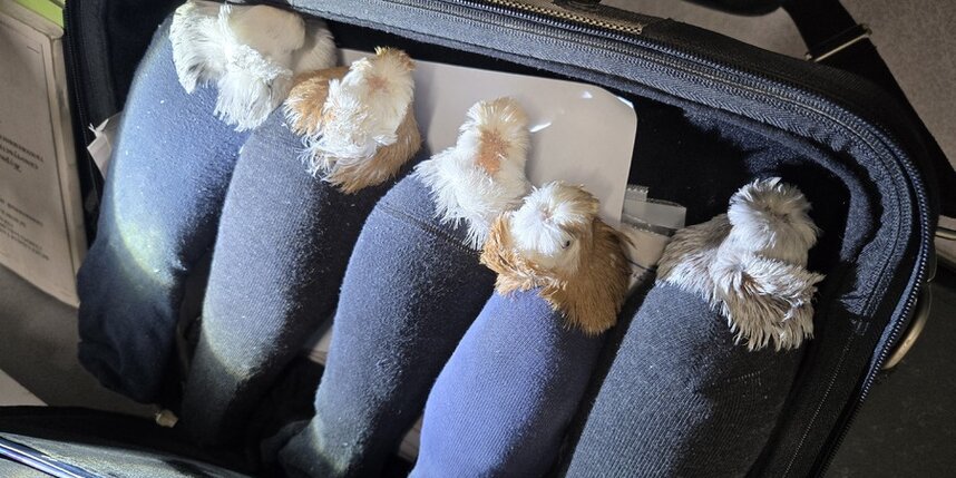 Каждую птицу иностранец спрятал в носок. Обездвиженные пернатые плотно лежали в небольшом чемодане.