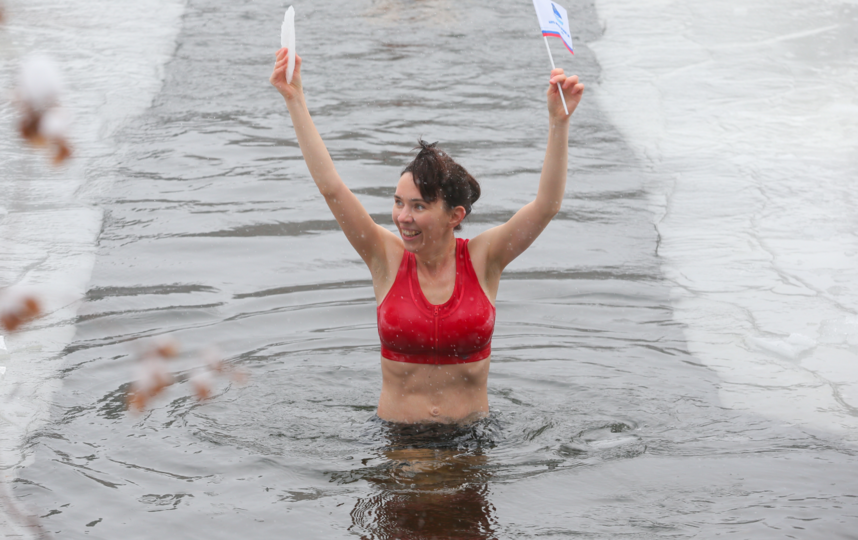 Ирина радуется своему первому нырку в зимнее время.