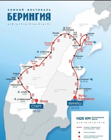 Маршрут самый длительной гонки на собачьих упряжках в России.