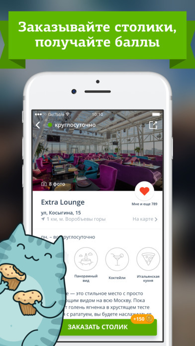 Онлайн-сервис бронирования столиков Gettable начал предоставлять скидки на всё меню в отдельных ресторанах и кафе Москвы и Петербурга. Клиенту нужно зайти на сайт или скачать приложение на мобильный телефон (Android, iOS), чтобы получить доступ к  заведениям общепита, участвующим в проекте. Предоставляемая скидка зависит от времени посещения.