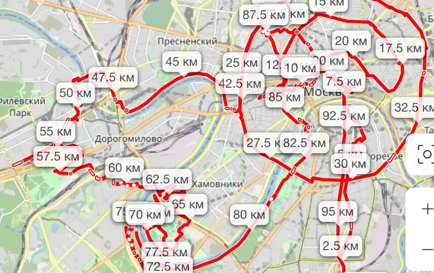 Вот так выглядит пройденный Екатериной маршрут на карте города.