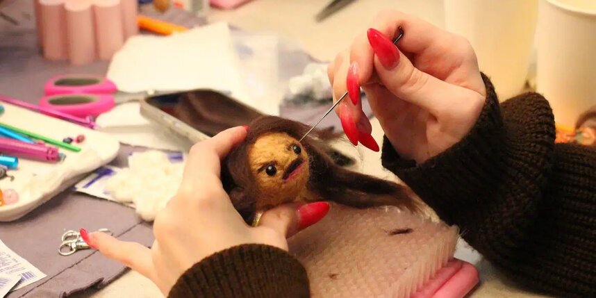 Поначалу кажется, что в небольшом шоуруме бренда "Мурмуризм" царит полная тишина, которую нарушает разве что негромкая музыка из колонок. Но стоит заглянуть внутрь, и видишь, как кипит работа. Шесть рукодельниц во главе с преподавателем Ольгой сидят за большим столом и кропотливо колдуют над своими творениями. Вторгаться даже как-то страшновато – куклы вуду ведь делают, вдруг и на меня пара проклятий перекинется? Но очень быстро становится понятно – никакой мистики здесь нет.