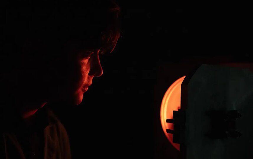 Сотрудник научно-исследовательской лаборатории "Лазеры и аппаратура" занимается облучением материалов.