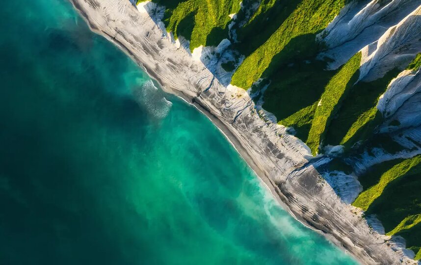 Белые Скалы расположены на побережье Охотского моря на острове Итуруп, входящем в Курильский архипелаг. Скалы состоят из пористого вулканического стекла и пемзы и сверху выглядят фантастически.