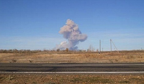 После взрыва снарядов возник пожар. На складе находятся около 13 миллионов боеприпасов.