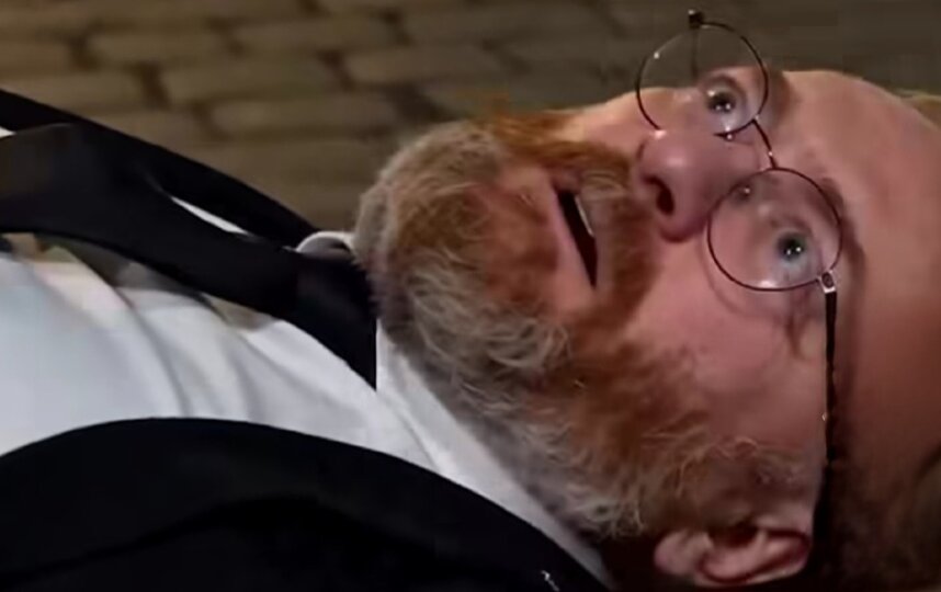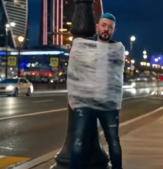 В ролике Боня закрывает паутиной рот Соловьеву, сковывает путами Лебедева и нокаутирует Милонова.