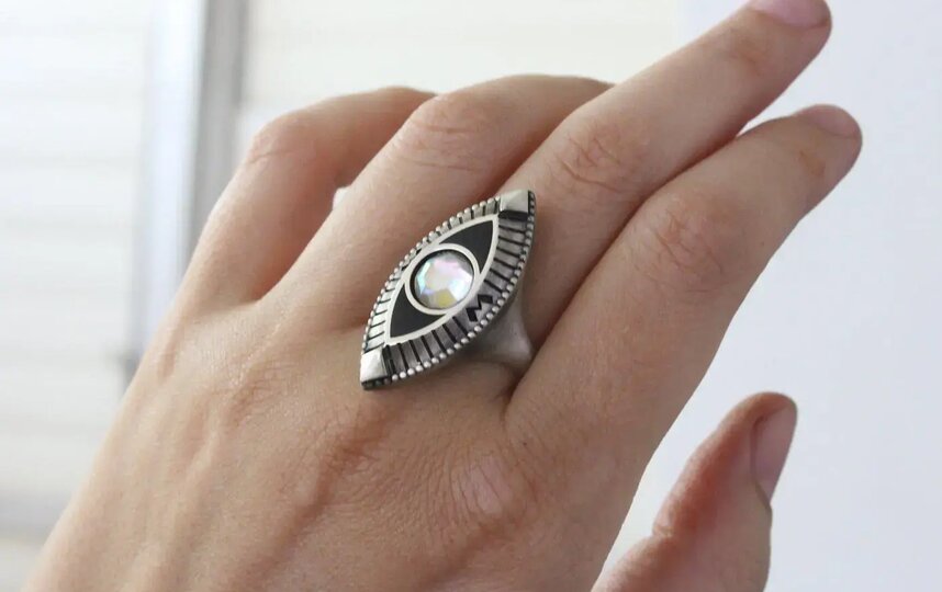 "Глазастый" перстень Мефистофель носил на протяжении всего фильма. Дизайн украшения разработала Александра Аронова, а Катя воплотила его в жизнь.
