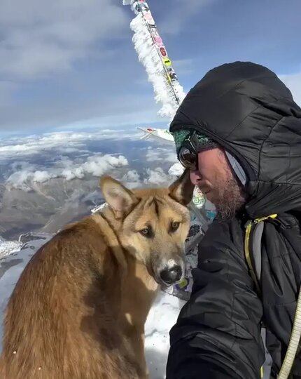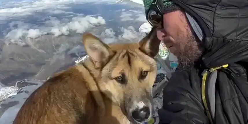 Этому псу не хватило чуть-чуть, чтобы взобраться на вершину Эльбруса