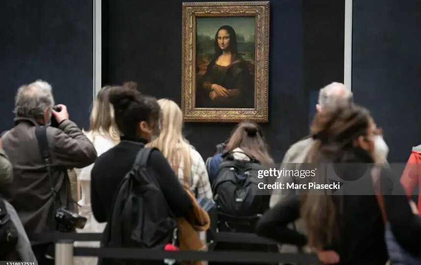 Посетители возле картины итальянского художника Леонардо да Винчи "Мона Лиза" в Лувре.