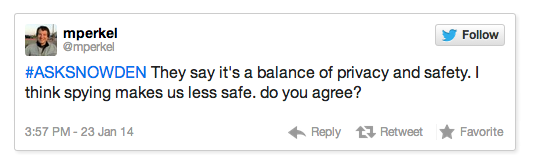 Правительство говорит, что это баланс между конфиденциальностью и безопасностью. Но мне кажется, что шпионаж делает нас менее защищёнными. Согласны ли вы со мной?