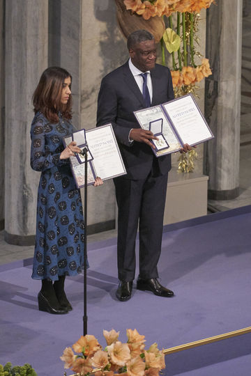 Конголезский гинеколог, Дени Муквеге, который лечил тысячи жертв изнасилования, и правозащитница из Ирака Надя Мурад, которая была продана в сексуальное рабство, были совместно награждены Нобелевской премией мира 2018 года в знак признания их усилий прекратить использование сексуального насилия как оружия на войне.