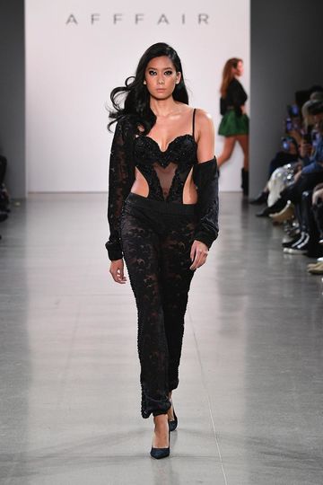 Полюбоваться на эффектную коллекцию модного красавца-дизайнера пришли представители нью-йоркского "света". В первых рядах на показе можно было увидеть и восходящую звезду США - красавицу-брюнетку Рахмеку Кокс, ставшую в 2018 году новой Мисс Нью-Йорк.