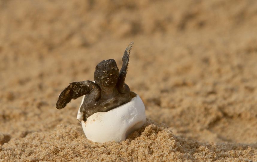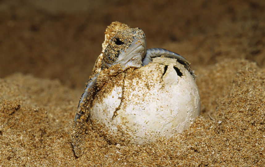 Маленькая черепаха-альбинос появилась на свет с бьющимся сердцем вне грудной клетки.