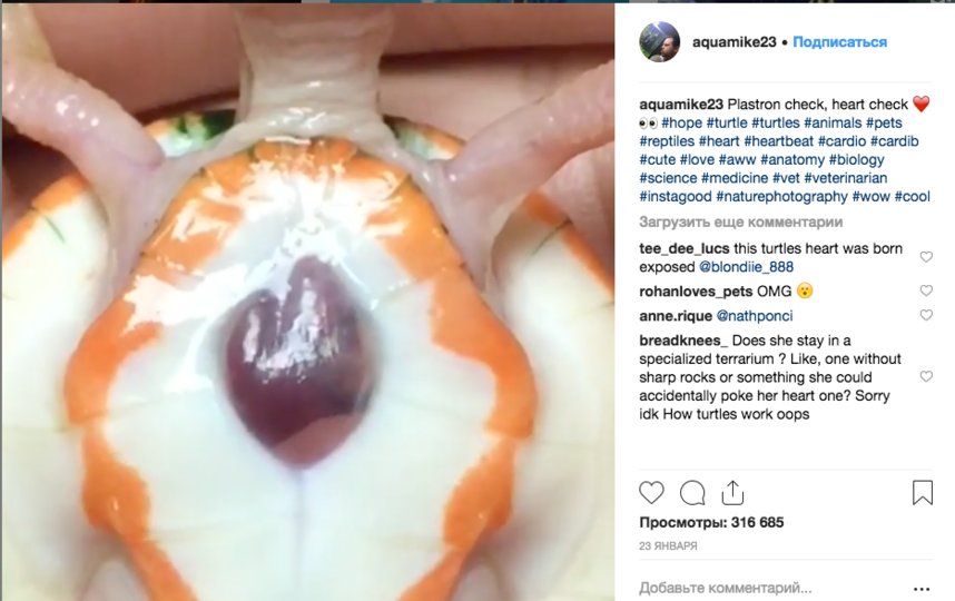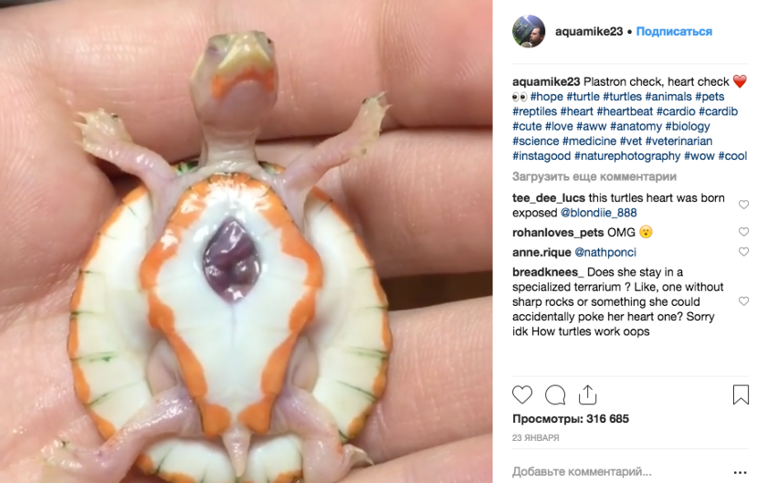 Историей черепашки и её редкого заболевания Майк поделился в соцсети.