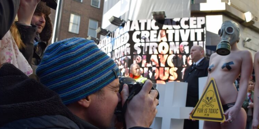 Эта акция предназначалась для всех собравшихся на неделе моды дизайнеров, чтобы призвать их не использовать в своих коллекциях натуральный мех, а особенно в одежде, предназначенной для детей.