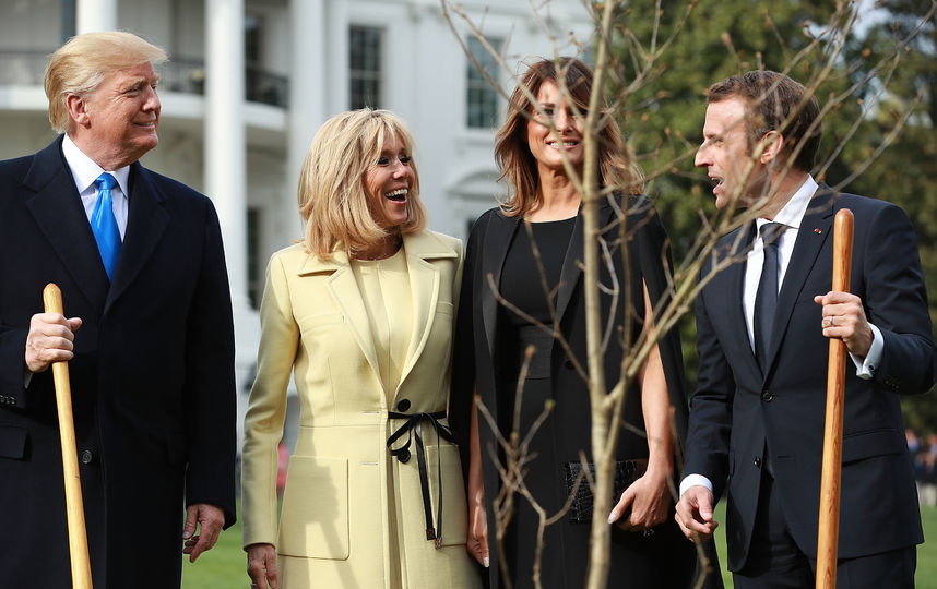 Президент США Дональд Трамп с супругой Меланией встретил в США высоких гостей - президента Франции Эммануэля Макрона и его жену Бриджит. Накануне у Белого дома, на Южной лужайке, состоялась церемония посадки дерева, которое привез коллеге в США глава Франции.