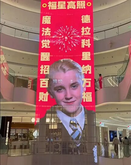 В китайском торговом центре к Новому году вывесили огромный электронный баннер, в центре которого изображён Малфой.