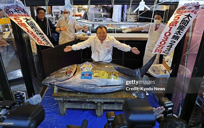 Покупателем стал президент крупнейшей сети суши-ресторанов. Вес рыбы составляет 243 килограмма. Она была поймана в районе северной префектуры Аомори. Отмечается, что данное событие - абсолютный рекорд за всю историю подобных аукционов. Год назад на первых новогодних торгах в Токио был продан тунец весом 276 кг. Однако его стоимость составила лишь $1,3 млн.
