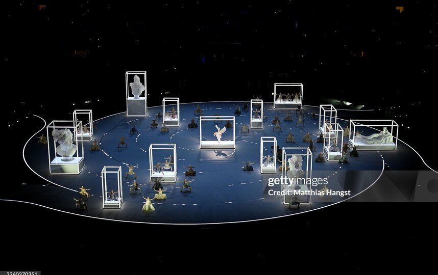 Основное действо началось с масштабного путешествия в мир итальянского искусства. Режиссёры постановки отдали дань уважения скульптору Антонио Канове, воссоздав на сцене с десятками актёров античный миф о Купидоне и Психее.