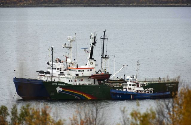 Напомним, 18 сентября команда Greenpeace провела акцию протеста против нефтяных разработок на платформе "Приразломная" в Печорском море. Экипаж судна Arctic Sunrise попытался прорваться на объект, чтобы развесить там баннеры с призывом прекратить нефтяное освоение Арктики. В свою очередь сотрудники ФСБ с использованием вертолета захватили борт и доставили весь экипаж в Мурманск.