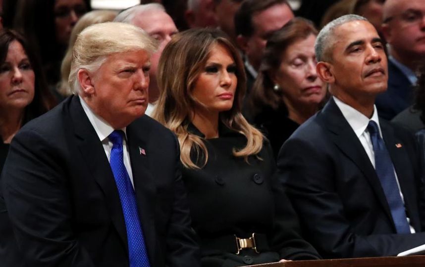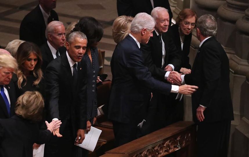 Накануне в Вашингтонском кафедральном соборе состоялось прощание с 41-м президентом США Джорджем Бушем-старшим, который скончался 30 ноября на 95 году жизни. На мероприятие пришли действующий глава государства и экс-президенты - Джимми Картер, Билл Клинтон и Барак Обама с супругами сидели рядом с Дональдом Трампом и первой леди Меланией Трамп.