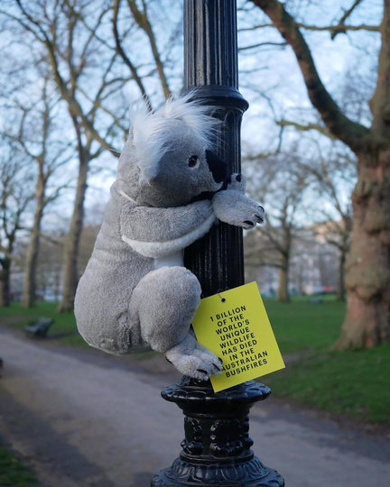 Десятки маленьких плюшевых коал недавно появились на улицах Лондона. Эти мягкие игрушки являются частью кампании, которую инициировала нью-йоркская организация Koalas of NYC. Она направлена на сбор средств для пострадавших от лесных пожаров животных в Австралии. К каждой игрушке прикреплена бирка с QR-кодом, который переводит на платформу GoFundMe, где можно сделать пожертвование.