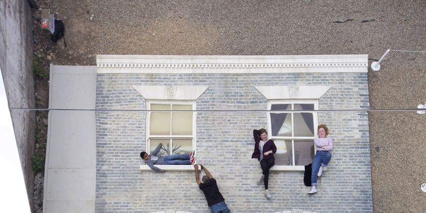 На востоке Лондона в районе Долстон появилась новая инсталляция аргентинского художника Леандро Эрлиха, которая создает оптическую иллюзию.