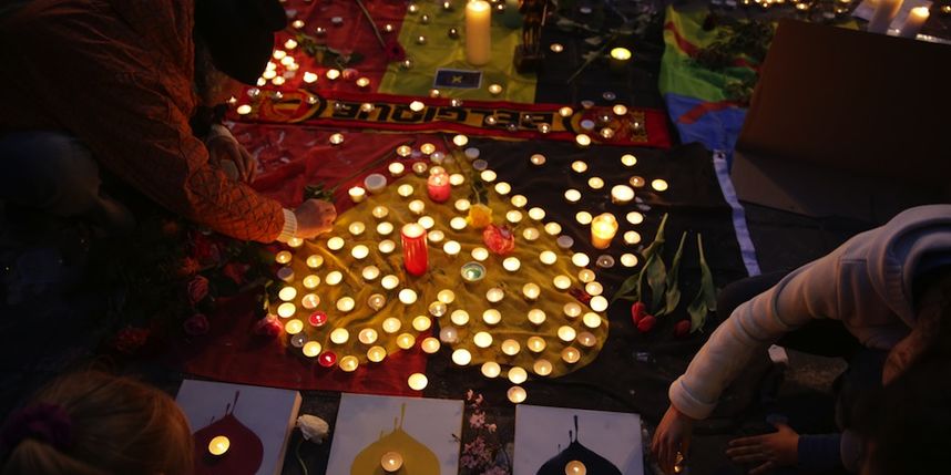 Brandenburg Gate, Burj Khalifa, Eiffel Tower, Royal Palace of Amsterdam and the world express solidarity w/ #Belgium pic.twitter.com/sxLEpIzLep