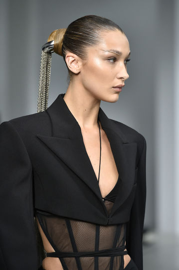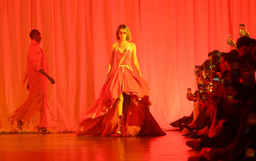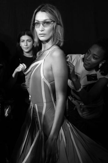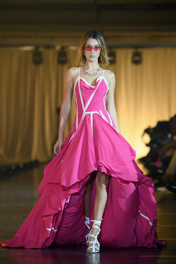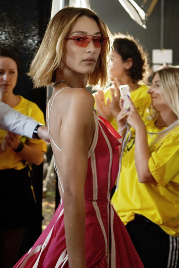 Стоит отметить, что это далеко не первый выход Беллы Хадид на парижской Неделе моды. Чуть ранее она вместе с сестрой Джиджи Хадид представили платья цвета фуксии.