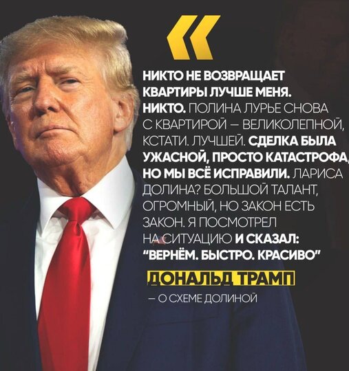 В интернете появилось сразу несколько мемов, где объединились Лариса Долина и президент США Дональд Трамп. Где-то американский лидер заявляет о своем влиянии на решение "квартирного вопроса", а где-то певица объясняет ему "казус с Аляской".