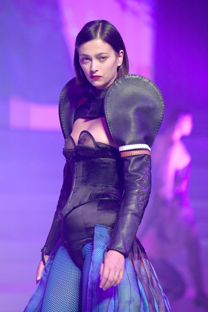Но дальше шоу Готье пошло в формате вечеринки. Знаменитая Коко Роша вышла на подиум, танцуя, как она это делала на своем первом показе у дизайнера в 2007 году.