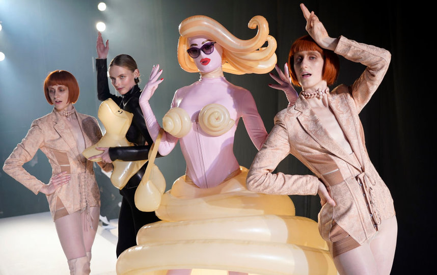 Не уступали по эпатажности и другие модели, демонстрируя на шоу фееричные наряды авторства Готье. Дизайнер решил показать все, на что он способен. Одной из "фишек" коллекции стали наряды, которые модели выносили на вешалках, придерживая их поверх тела, и как бы копируя бумажных кукол.