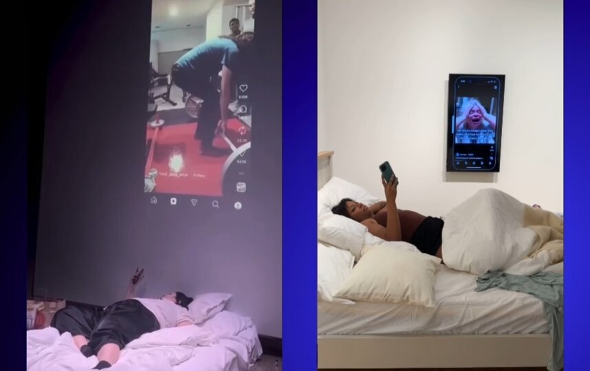 Художница целый день листала короткие ролики – рилсы, а на экране около ее постели демонстрировались все эти видео. Перформанс провели в художественном центре Eastern Bloc и вели онлайн-трансляцию.