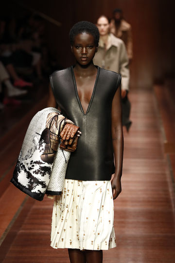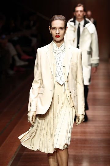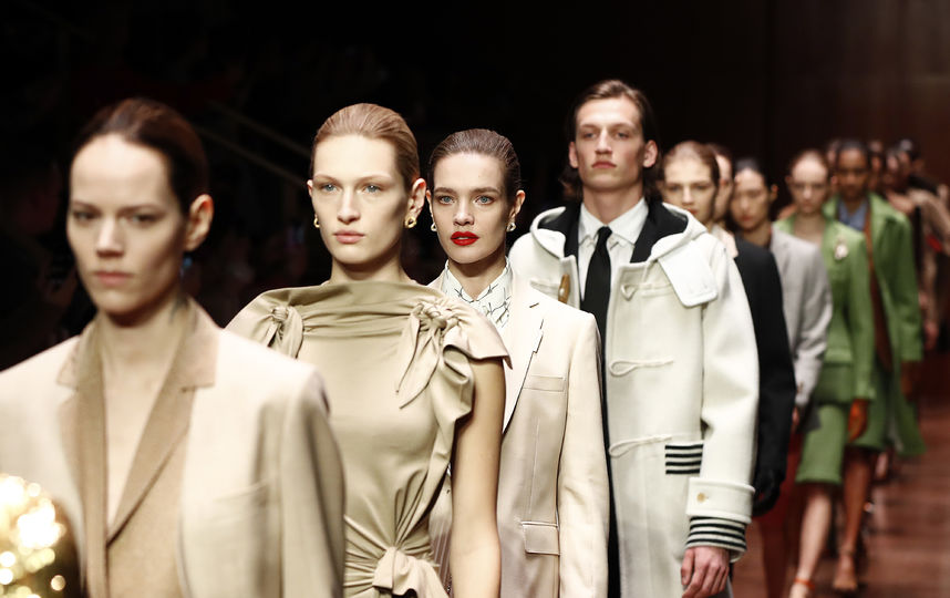 В похожем образе появилась на шоу Burberry и еще одна наша соотечественница - Наталья Водянова. Вместе с ними на подиум выходили мега-звезда подиумов Джиджи Хадид и модель Стелла Теннант.