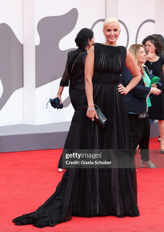 Одной из первых, кто ступил на красную дорожку 82-го Венецианского фестиваля, стала Кейт Бланшетт. Её выбор пал на чёрное вечернее платье от Armani Privé. Платье подчёркивает элегантную, но в то же время страстную натуру актрисы. Несмотря на то что в этом образе с глубоким декольте, обрамлённым крупными камнями, Бланшетт уже появлялась на премии SAG Awards в 2022 году, в Венеции он снова собрал овации поклонников.