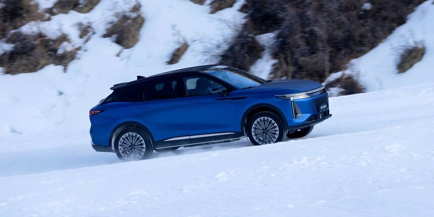 Самый сложный участок находился на высоте около 2000 метров и отличался крутым уклоном в 41°. Из-за постоянного сильного ветра и низких температур на слое неуплотнённого рыхлого снега в 50 см образовалась хрупкая ледяная корка толщиной 2–3 см. При коэффициенте трения всего 0,2 μ EXEED RX PHEV преодолел подъём со стабильной скоростью 60–100 км/ч, без пробуксовки колес и заноса.