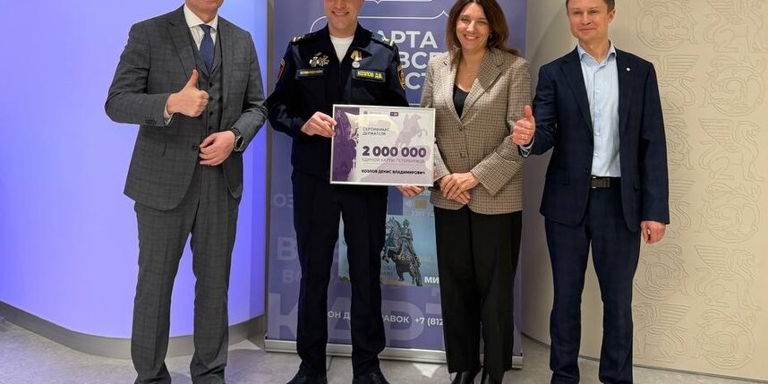 Клиенту Сбербанка торжественно вручили двухмиллионную Единую карту петербуржца. Владельцем карты стал пожарный Денис Козлов, который подал заявку на оформление ЕКП в отделении банка в Санкт-Петербурге.