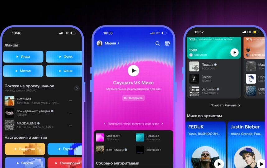На главной странице VK Музыки появились новые разделы, которые формируются на основе рекомендательной системы стриминга. Настройка "Настроения и занятия" подбирает треки, наиболее подходящие для времяпрепровождения: от работы до вечеринки. Также она основывается на настроении пользователя прямо сейчас – от радостного до спокойного. В настройке "Жанры" помимо ранее представленных ключевых направлений (поп, хип-хоп, рок и электроника) появились новые: инди, метал, фолк, фонк, джаз, фанк, эмбиент и панк.