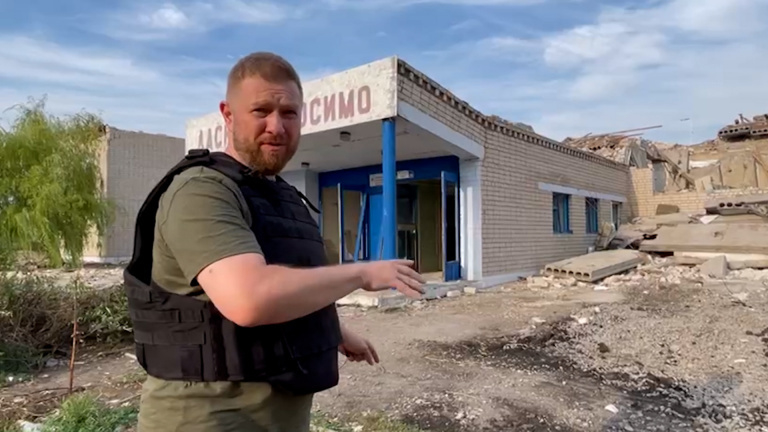 На данный момент он находится в 30 километрах от линии фронта. На месте съемок работают моторы, чтобы успеть выбраться из опасной зоны, если снаряды украинской артиллерии вновь решат ударить по мирному населению.