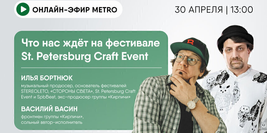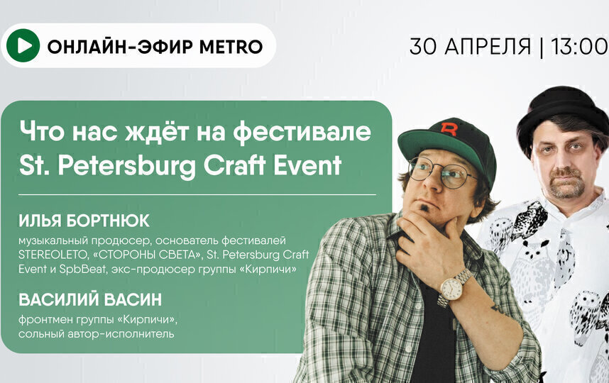 16 мая в культурном квартале "Брусницын" пройдёт фестиваль St. Petersburg Craft Event. На музыкальной сцене выступят дуэт "Людмил Огурченко", Вася Васин с программой "Песни Майка и битлов", коллектив "Пузо и виртуозы Ленинграда", а также афро-кубинская группа "АФРОК". Фестиваль пройдёт в новом формате одного дня с расширенной программой. Обо всём подробно поговорим с Васей Васиным и Ильёй Бортнюком в онлайн-эфире (12+) эксклюзивно в официальном сообществе газеты Metro в социальной сети "ВКонтакте" 30 апреля в 13 часов. Присоединяйтесь!