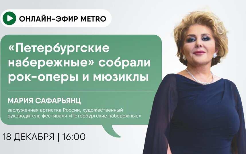 Северная столица находится во власти музыки - сейчас проходит XIV Международный фестиваль "Петербургские набережные" (6+), в рамках которого 21 декабря состоится концерт "Рождественские встречи у барона Кельха", а 27 декабря - Рождественский концерт. О тандеме музыки и кино расскажет гость онлайн-эфира Metro Мария Сафарьянц.