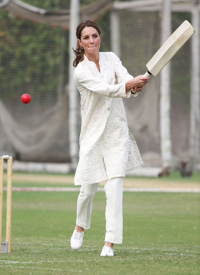 На следующий день Кейт Миддлтон отправилась в Национальную академию крокета в Лахоре. Супруга принца Уильяма выбрала костюм из слоновой кости с тяжелой вышивкой от бренда High Street, который стоит 65 долларов (4145 тысяч рублей).