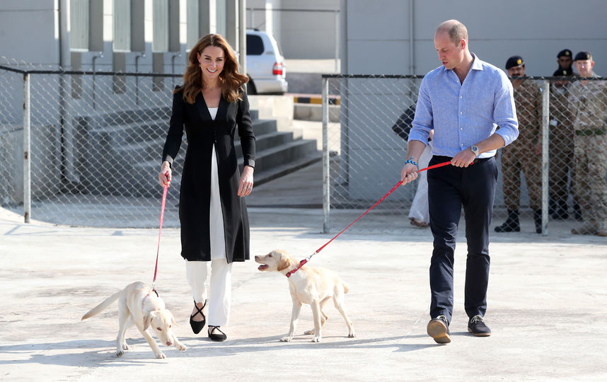 А в пятницу герцог и герцогиня Кембриджские вернулись в Исламабад. Супруги посетили армейский кинологический центр. Кейт отдала предпочтение черному блейзеру марки Beulah London Flora, дополнив образ черными балетками Russel & Bromley. Образ обошелся Миддлтон в 799 долларов (51 тысячу рублей).